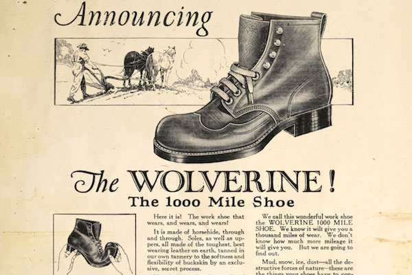 Schuhe von Wolverine halfen mit beim Aufbau Amerikas, die Marke existiert bereits seit 1883. 1914 wurde die Linie "1000 Mile Boot" entwickelt, die für besondere Haltbarkeit stand. Als Leder wird ausschließlich Horween Leder aus Chicago verwendet. Die rahmengenähten Lederschuhe dieser Linie sind handmade in USA und ihr Geld wert.