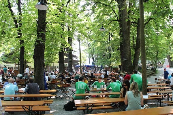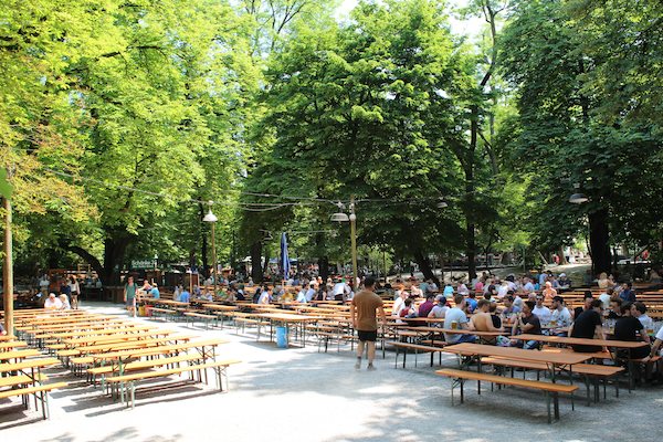 Mehr als 100 Kastanien, frisch vom Holzfass gezapfte Maß Augustiner Edelstoff, und die typischen Leckereien vom Grill. Hier fühlen sich alle wohl - bis 23 Uhr: Studenten, Promis, Einheimische, Stammgäste, Touristen - egal ob Jeans oder Tracht. Auch wenn es bei schönem Wetter eng wird - bei rund 5.000 Plätzen findet man irgendwo noch ein Stück Bierbank und vielleicht direkt Anschluß.
